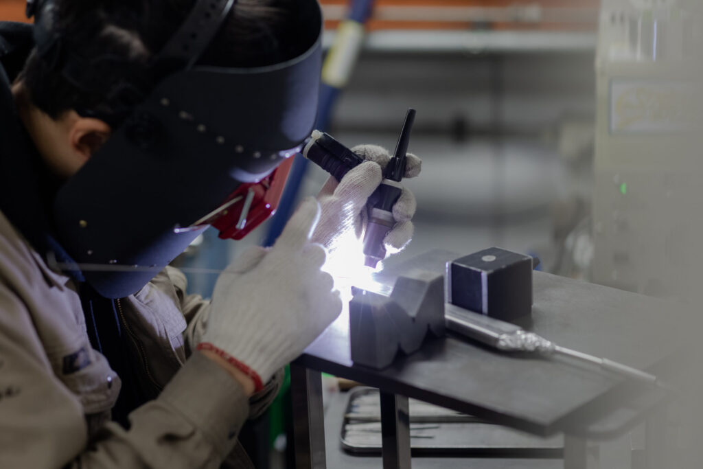 入社から1年半、溶接の技術を日々磨く杉野さん。テレアポの仕事を5年ほど経験しましたが、「将来を考えて、自分のためになる仕事を」と手に職をつけることを決意しました